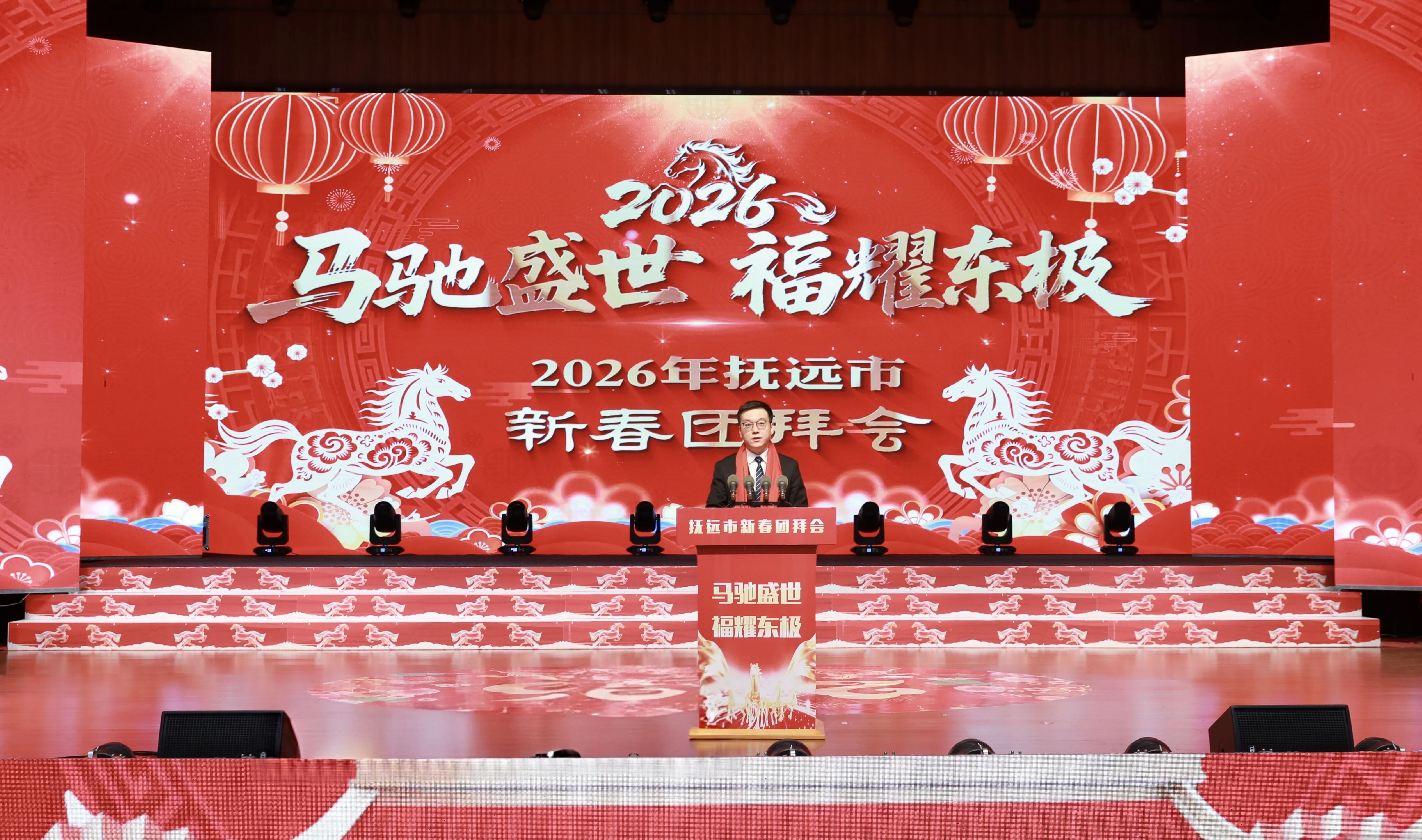 金马奔腾迎盛世,东极欢歌贺新春。2月10日,抚远市隆重举办“马驰盛世福耀东极”2026年新春团拜会,全市各界人士欢聚一堂,共庆新春佳节、共话发展成就、共绘美好蓝图,推动抚远高质量振兴发展再启程。佳木斯市委常委、抚远市委书记何大海出席活动,市委副书记、市长郑树一致辞,郑志刚、王忠山等市级四个班子副处级以上领导出席活动。