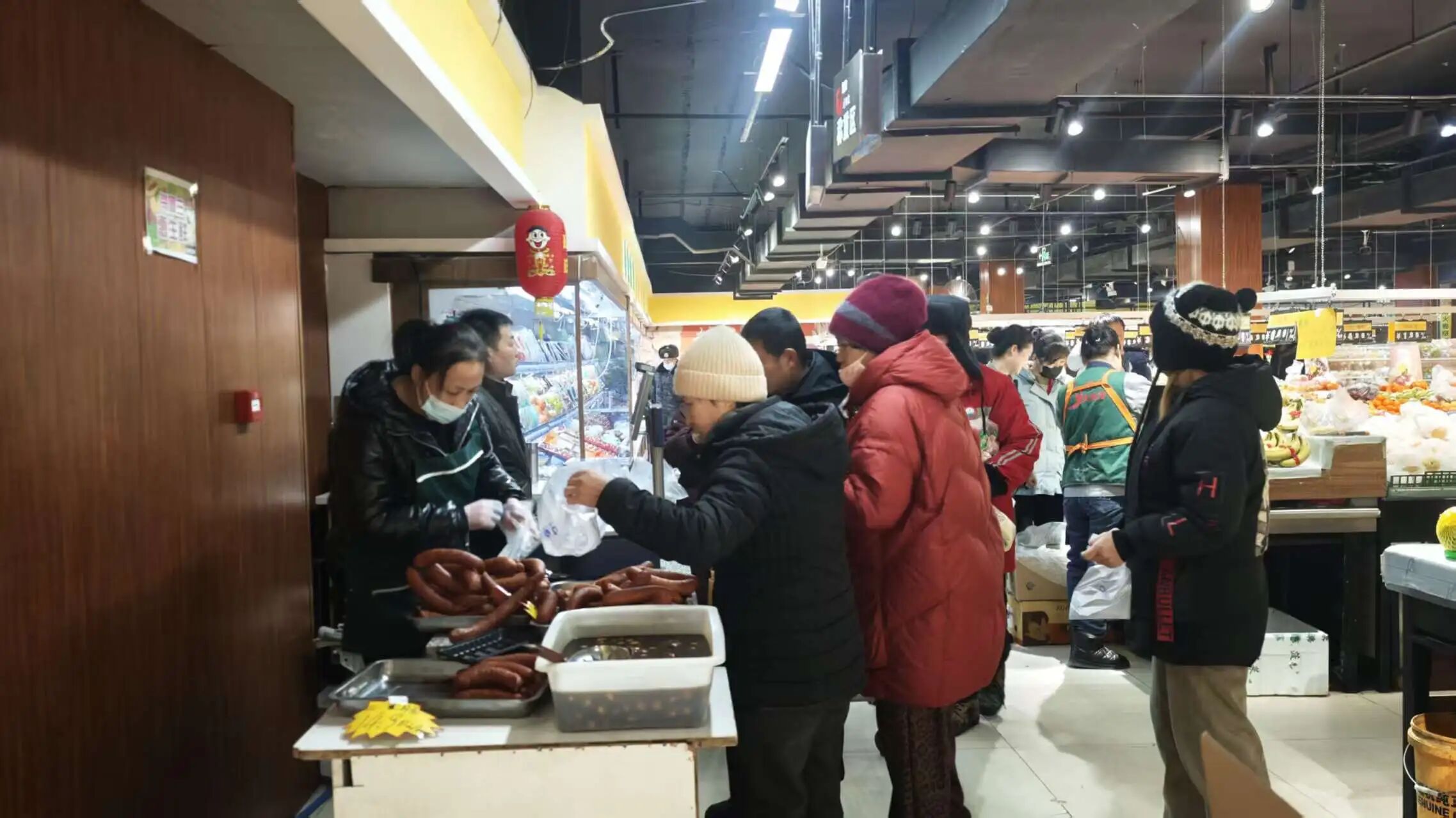 腊八粥食材持续热销的同时,超市内的年货专区也是年味拉满。新鲜果蔬品类齐全、鲜嫩水灵,各类冻货备货充足、品质上乘,吸引了大批市民驻足挑选、精心采购。收银台前,工作人员快速的扫码结算,效率满满;排队的市民们一边等候,一边交流着自家的年货清单,话语间满是对新年的期待,处处洋溢着热闹祥和、温馨喜庆的烟火气息。