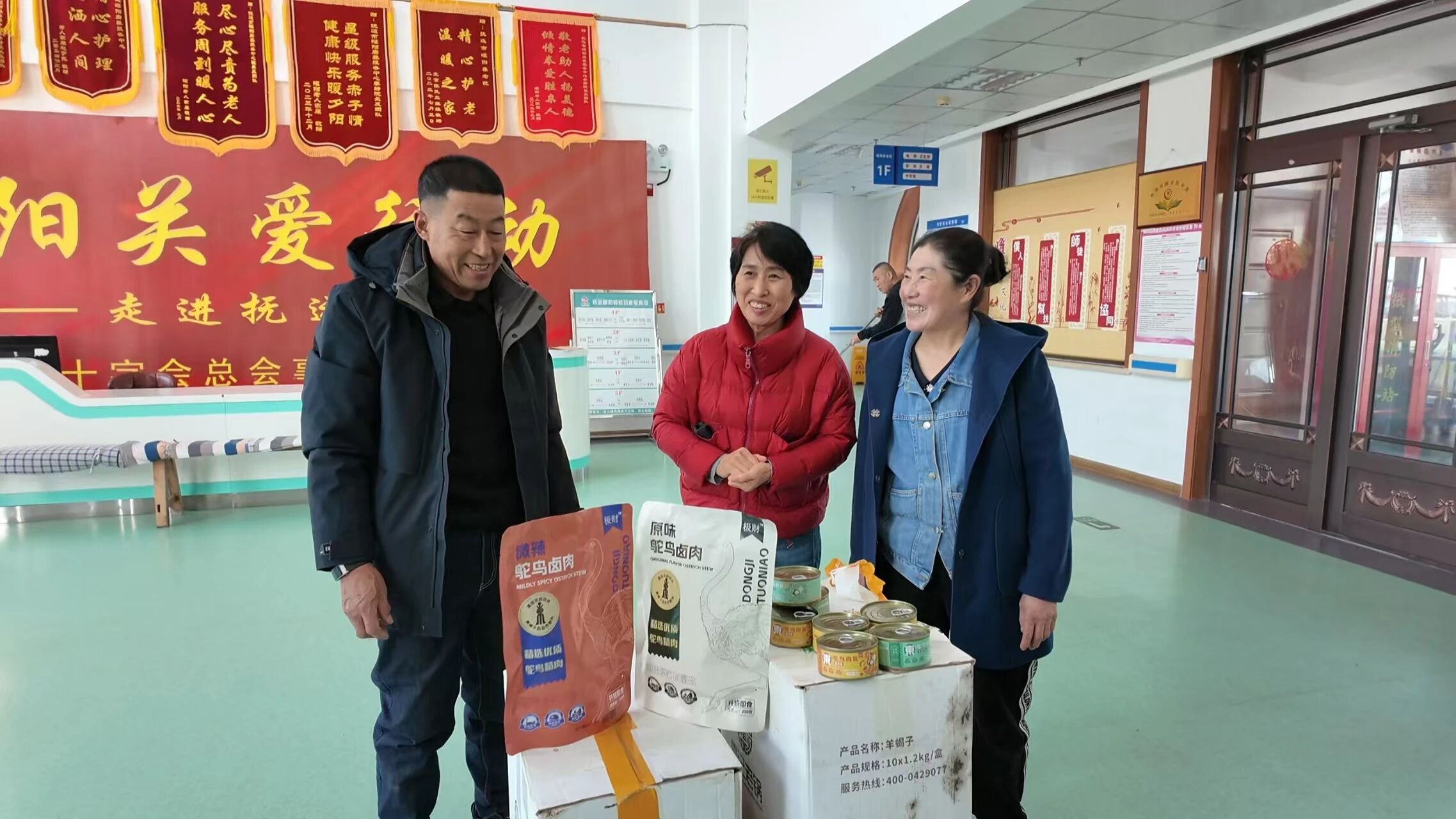 慰问中,合作社为养老院送去了鸵鸟肉水饺80袋、鸸鹋肉水饺40袋、特色鸵鸟卤肉40袋以及鸵鸟肉罐头210盒,所有慰问品均来自合作社自主养殖与加工。此次捐赠既为老人们送上了实实在在的物资关怀,也传递了社会对老年群体的温情与敬意,让大家在传统佳节里感受到浓浓的关爱与温暖,同时也向社会展现了东极特色养殖产业的发展成果。