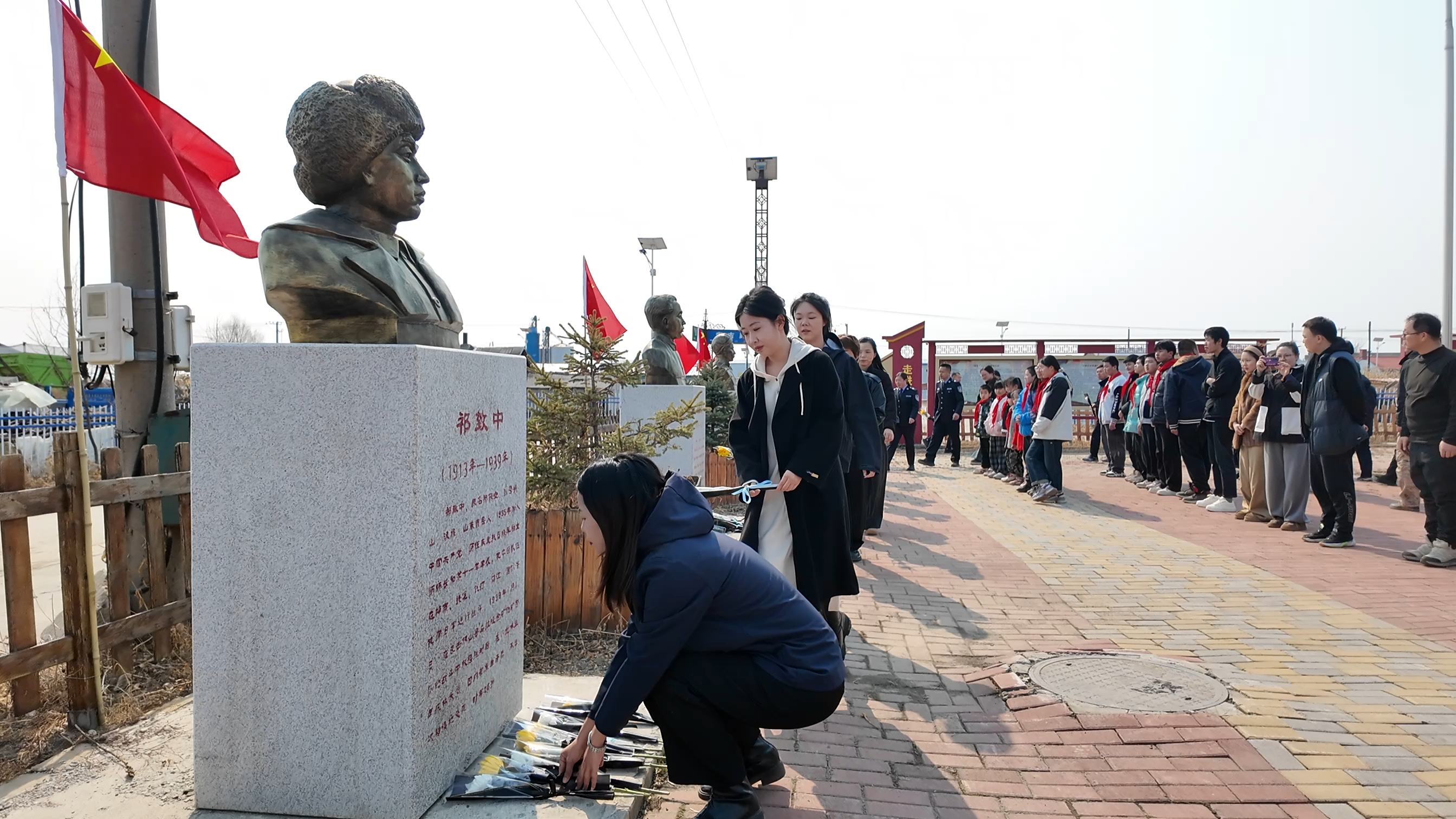 4月3日,抚远市海青镇红色主题党建公园庄严肃穆,革命烈士纪念碑巍然矗立。来自海青镇、鸭南乡的党员干部、群众与师生代表整齐列队,开展清明祭扫活动。大家面向抗联英雄雕塑肃立默哀、依次敬献鲜花,重温革命先烈为家国解放抛头颅、洒热血的英勇事迹,以简约而庄重的仪式,寄寓对革命先烈的深切缅怀与崇高敬意。