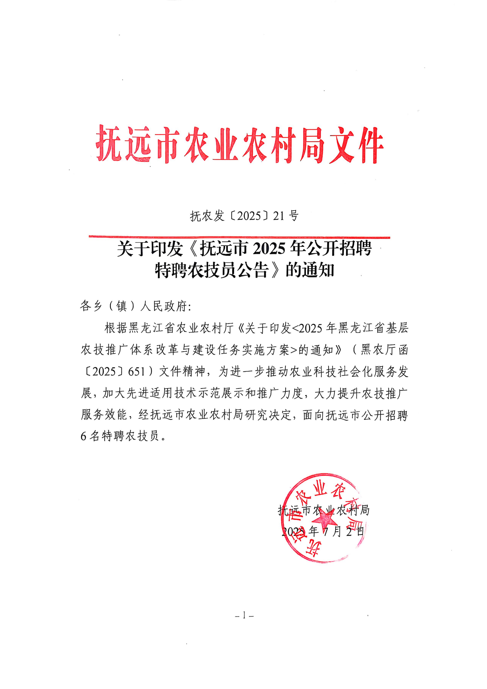 抚远市2025年公开招聘特聘农技员公告