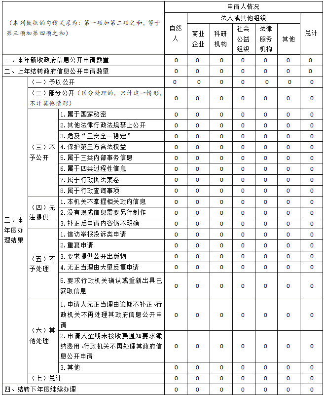 三、收到和处理政府信息公开申请情况