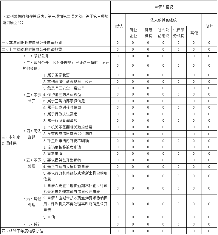 三、收到和处理政府信息公开申请情况