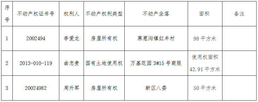 因不动产权利人保管不善,遗失下列不动产权证书,根据《不动产登记暂行条例实施细则》第二十二条之规定及不动产权利人不动产权证书遗失声明,现公告作废。如有异议,请自本公告之日起20个工作日内(2026年1月23日之前)持异议书面材料到本登记机构办公场所提出异议,并提供有关材料。逾期无人提出异议,本登记机构将予以登记。