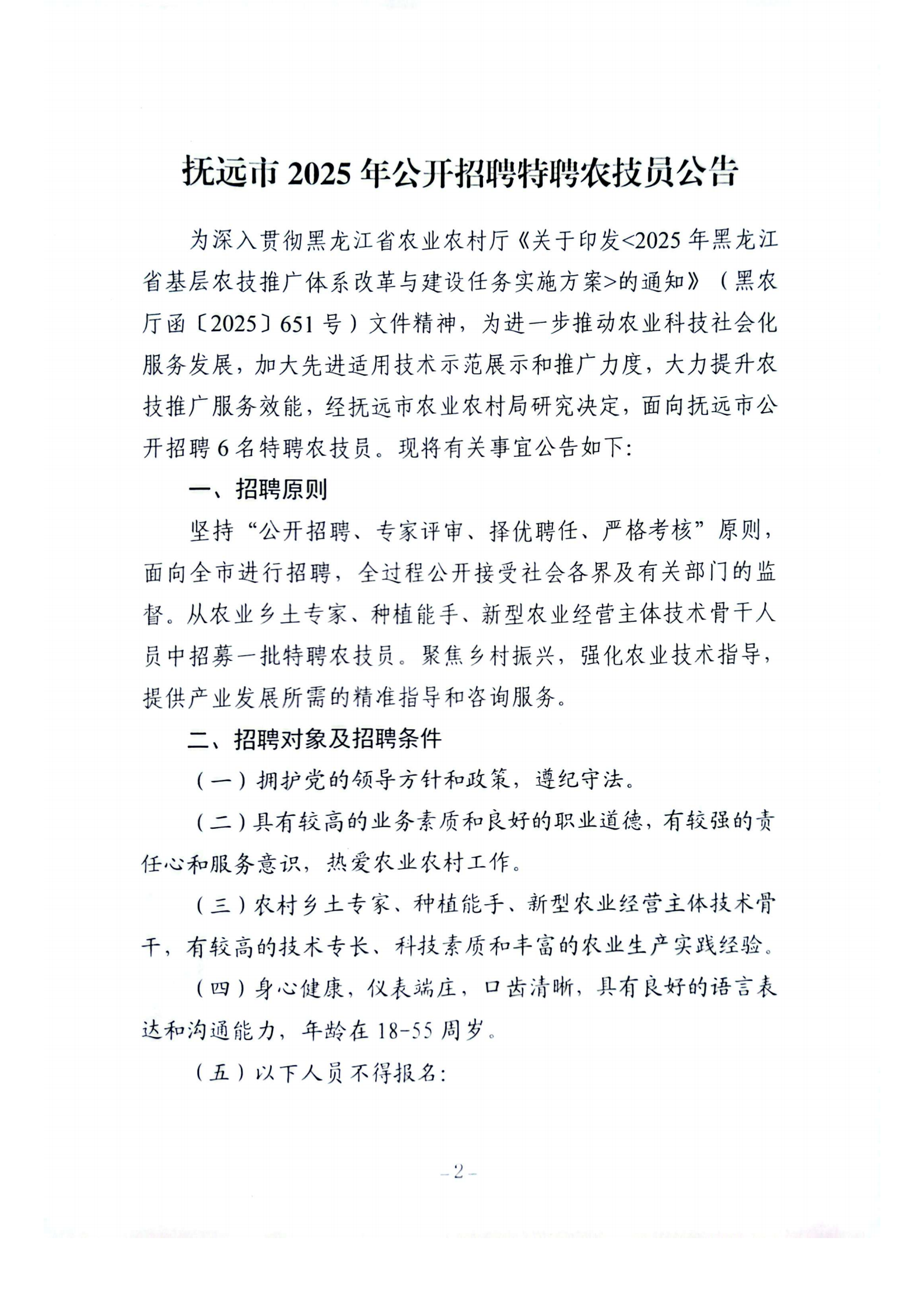 抚远市2025年公开招聘特聘农技员公告