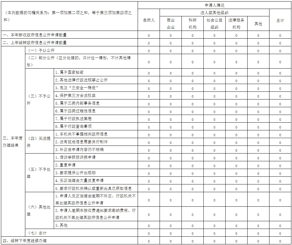 三、收到和处理政府信息公开申请情况