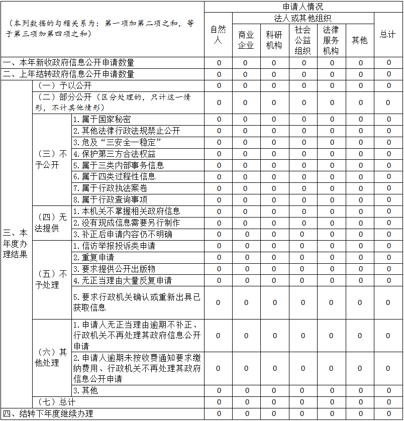 依申请公开工作中,严格规范申请接收、登记、审核、办理、答复、归档全流程管理,建立健全内部协同机制,确保申请事项得到及时妥善处理。2025年全年,我局依申请公开0件。本年度我局没有发生因政府信息公开申请行政复议、提起行政诉讼的情况。
